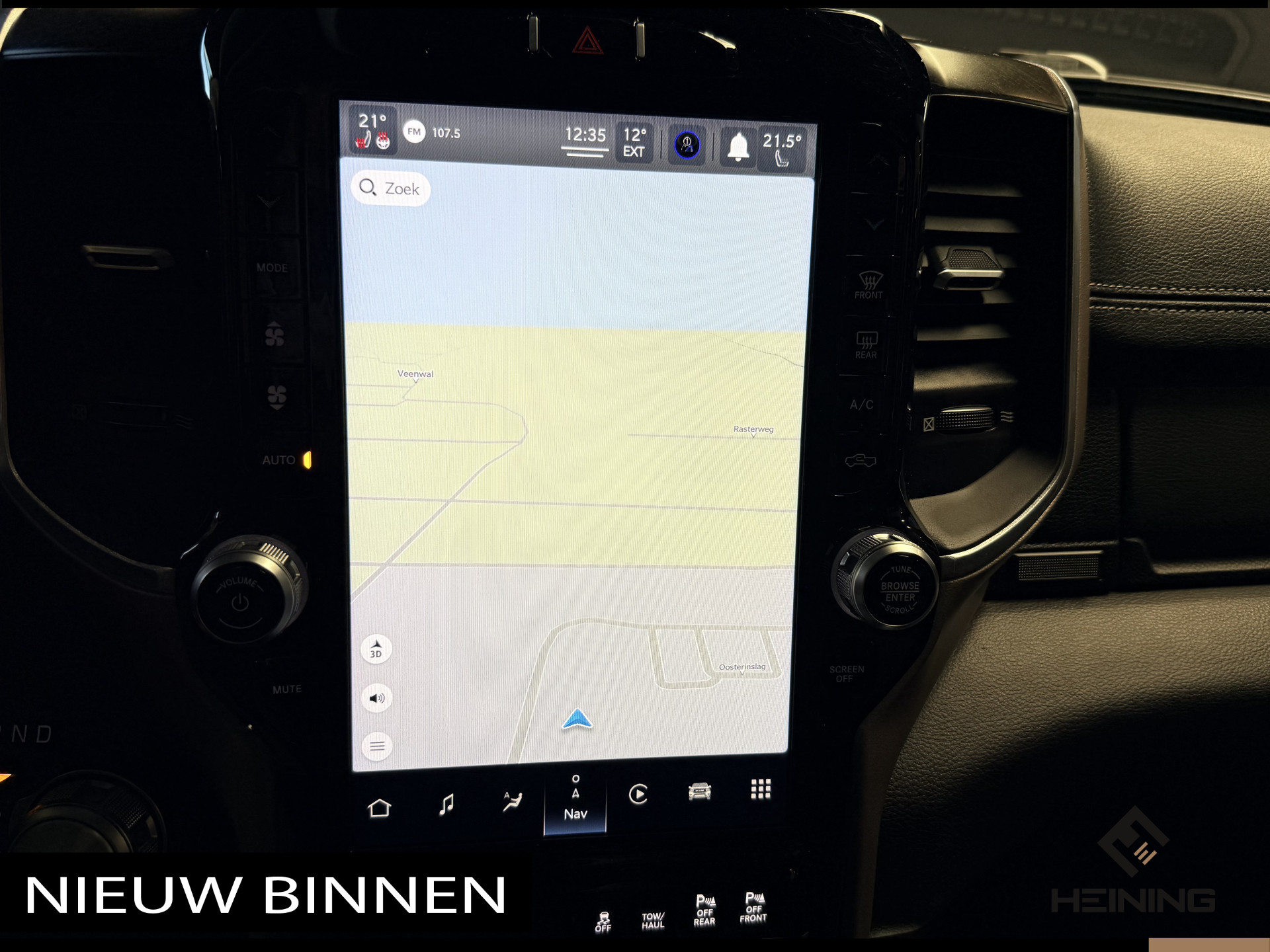 De Dodge Ram 1500 is uw trouwe partner onderweg, want hij houdt continu voor u de situatie op en om de weg in de gaten. Volautomatische veiligheidssystemen kunnen daarbij ingrijpen om u voor gevaarlijke situaties te behoeden. Indien u onbedoeld de rijstrook lijkt te verlaten, reageert het Lane-keeping systeem meteen en corrigeert. Een noodsituatie? Dan is remmen cruciaal. Daarom heeft deze Dodge Ram 1500 Brake Assist als remondersteuning. Ook helpen het dodehoekdetectie, hill hold functie en bandenspanningcontrolesysteem, uw rit tot een veilige rit te maken.
