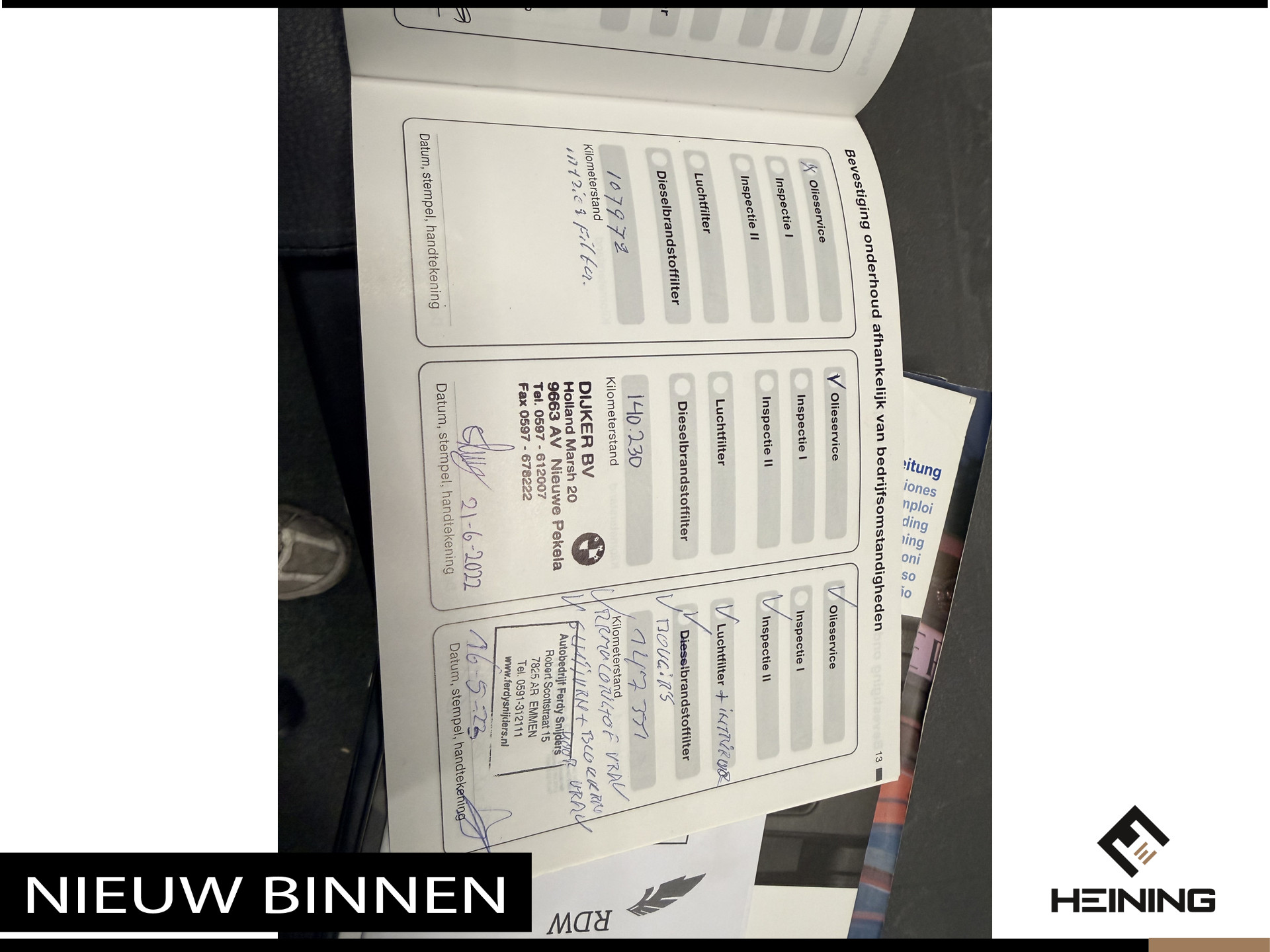 - Onderhoudsboekje aanwezig?